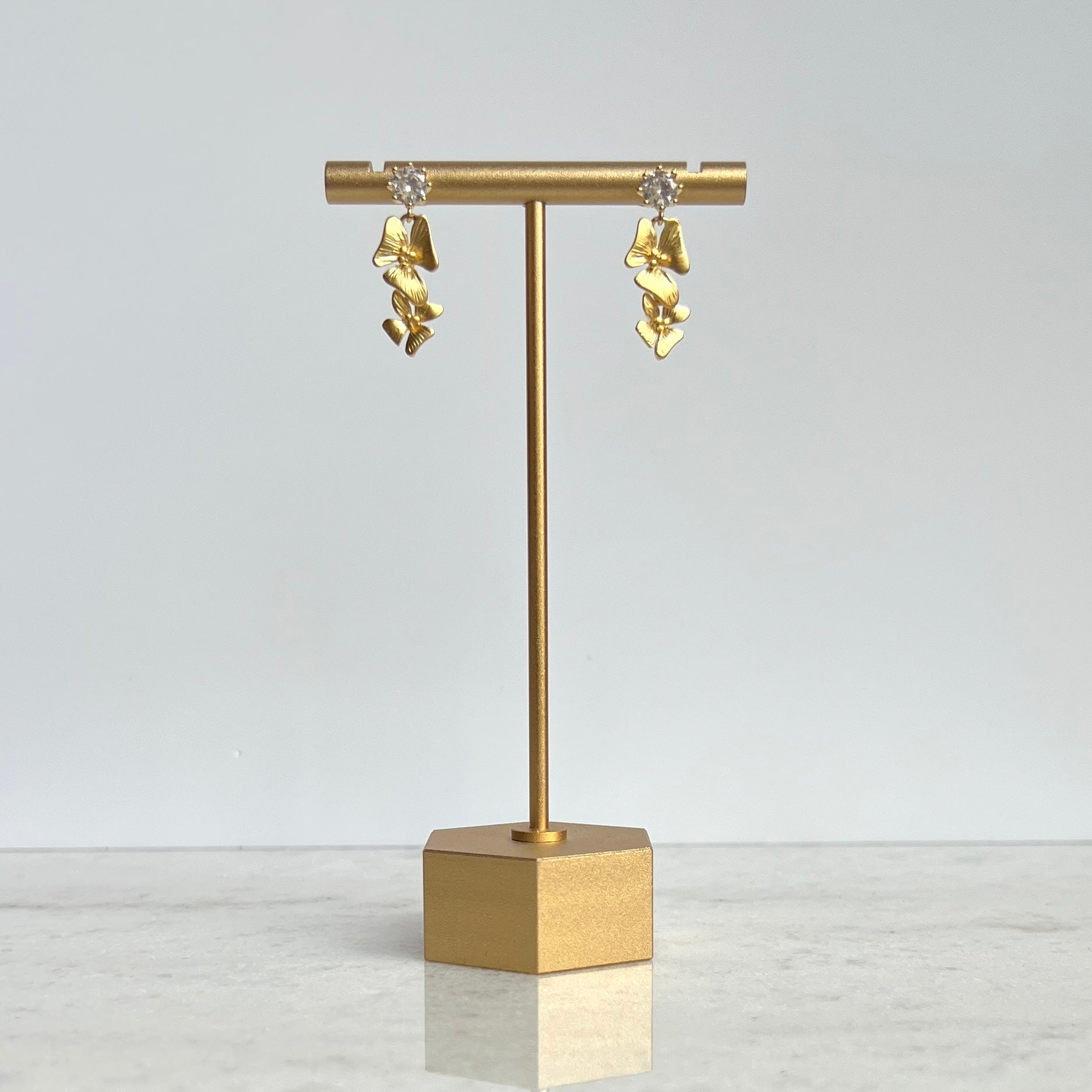 Show stopping earrings fit for a Queen! These earrings features 5, 3, or 2 stunning matte gold plated flowers on a gold-filled round cubic zirconia post. Three different flower length options available to suit your style!